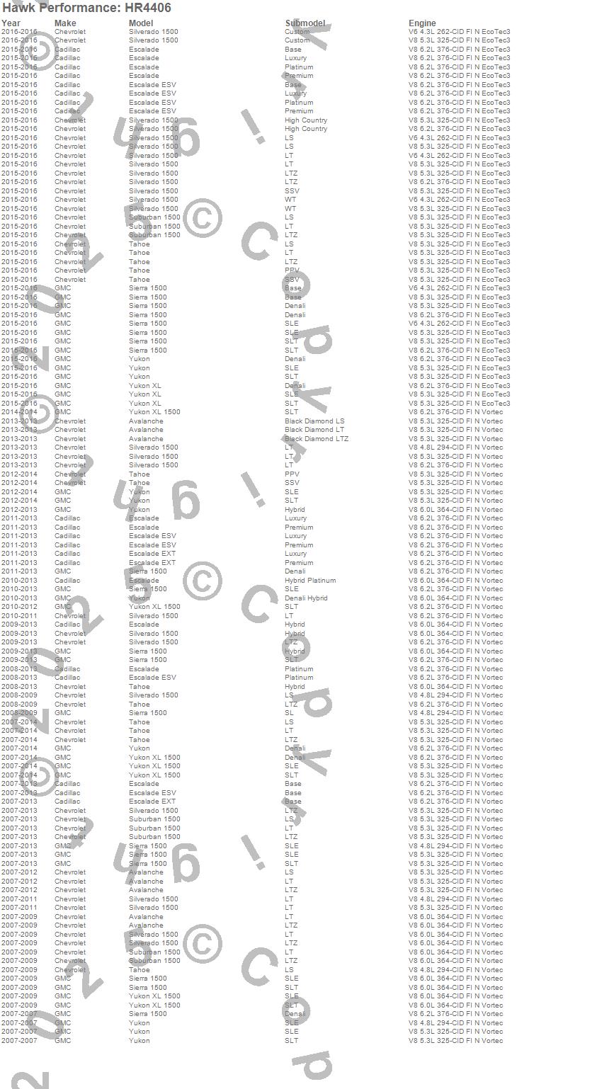Below is an abreviated list of applications for the Sector 27 Rotor.