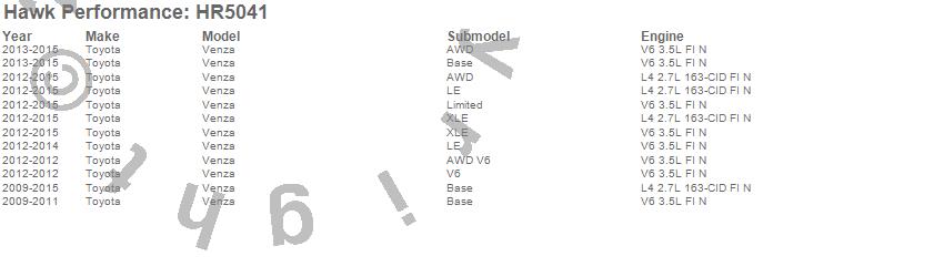 Below is an abreviated list of applications for the Sector 27 Rotor.