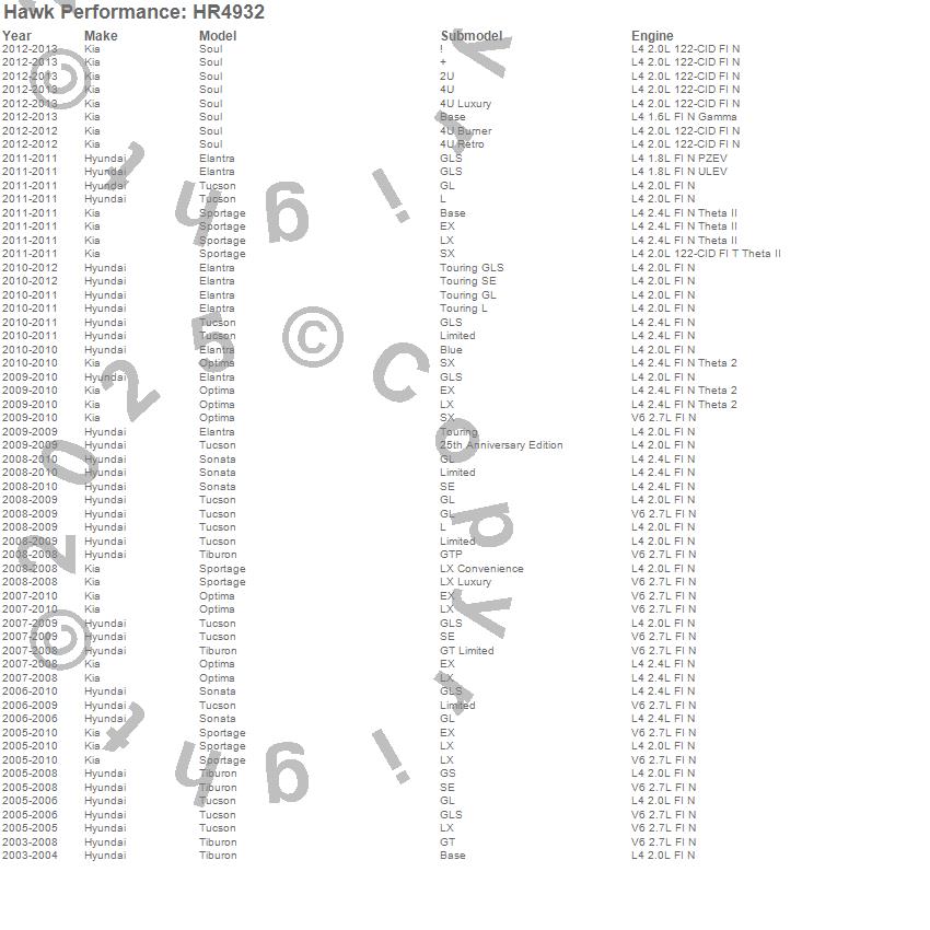 Below is an abreviated list of applications for the Sector 27 Rotor. Elantra, Optima, Sonata, Soul, Sportage, Tiburon, Tucson, Hyundai, Kia, 2013, 2012, 2011, 2010, 2009, 2008, 2007, 2006, 2005, 2004, 2003 more…
