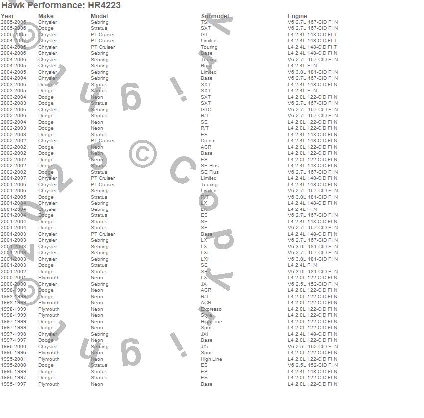 Below is an abreviated list of applications for the Sector 27 Rotor. Neon, PT Cruiser, Sebring, Stratus, Chrysler, Dodge, Plymouth, 2007, 2006, 2005, 2004, 2003, 2002, 2001, 2000, 1999, 1998, 1997, 1996, 1995 more…
