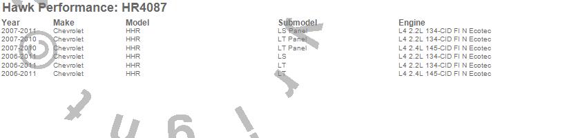 Below is an abreviated list of applications for the Sector 27 Rotor.