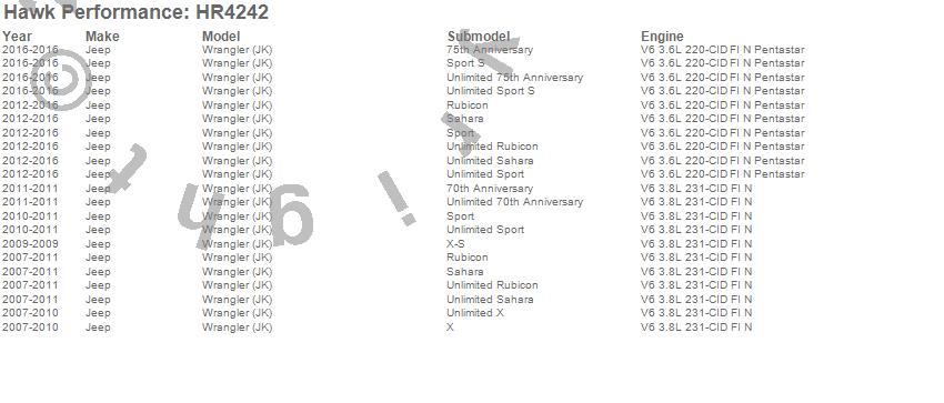 Below is an abreviated list of applications for the Sector 27 Rotor.