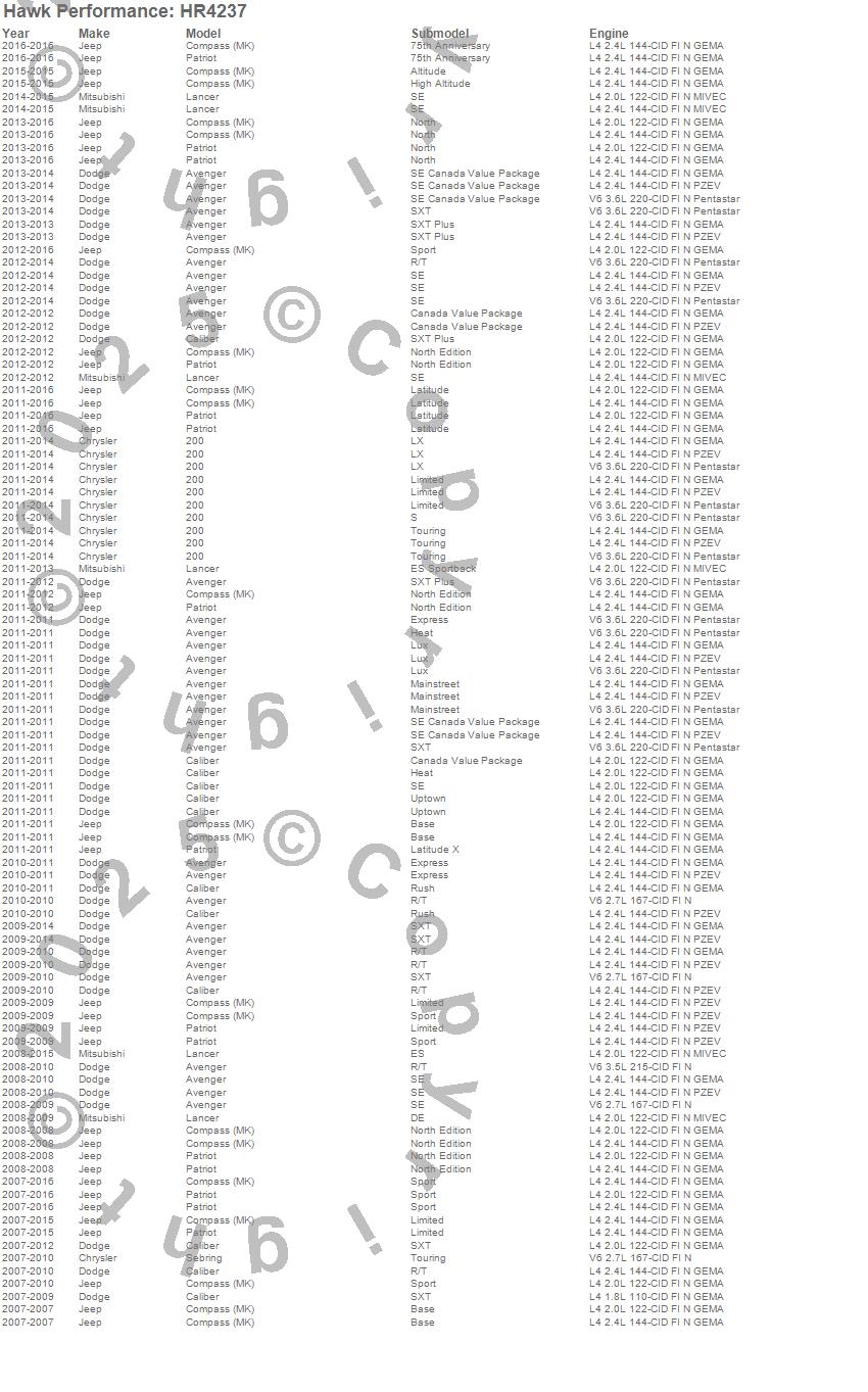 Below is an abreviated list of applications for the Sector 27 Rotor. 200, Avenger, Caliber, Compass, Lancer, Patriot, Sebring, Chrysler, Dodge, Jeep, Mitsubishi, 2014, 2013, 2012, 2011, 2010, 2009, 2008, 2007 more…