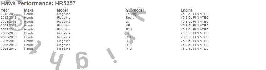 Below is an abreviated list of applications for the Sector 27 Rotor.