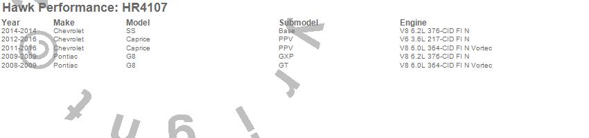 Below is an abreviated list of applications for the Sector 27 Rotor.