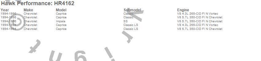 Below is an abreviated list of applications for the Sector 27 Rotor.