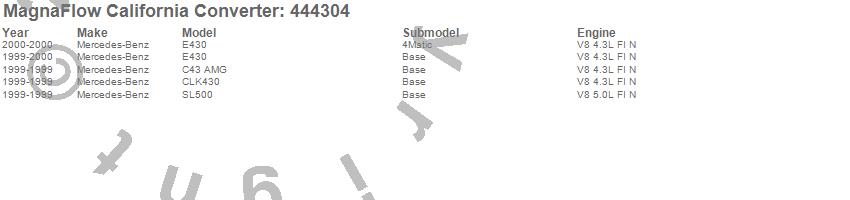 Below is an abreviated list of applications for the Direct Fit California Catalytic Converter.