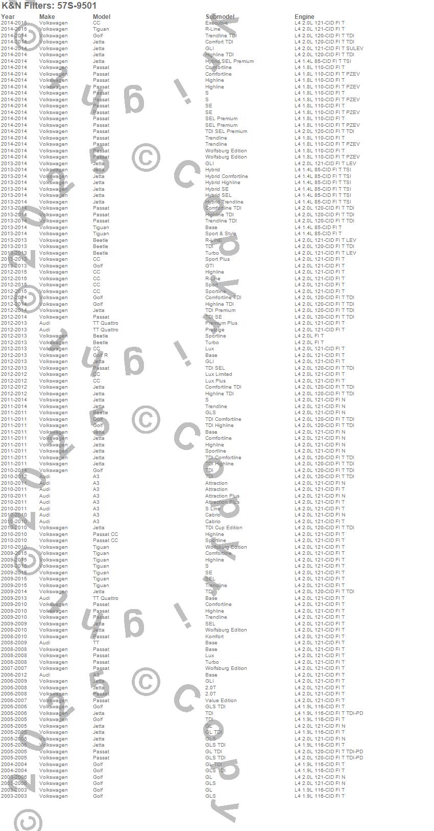 A3, Beetle, CC, Eos, Golf, Jetta, Passat, Tiguan, TT, TT Quattro, Audi, Volkswagen, 2015, 2014, 2013, 2012, 2011, 2010, 2009, 2008 more…
