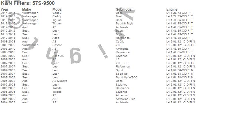 Below is an abreviated list of applications for the 57i Series Induction Kit.
