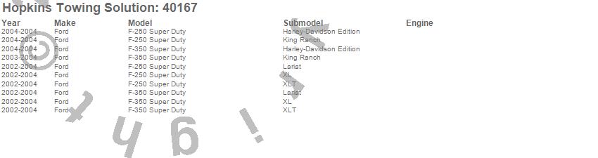 Below is an abreviated list of applications for the Endurance 5th Wheel Harness.