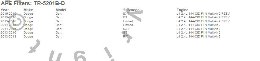 Below is an abreviated list of applications for the Takeda Stage-2 PRO DRY S Intake System.