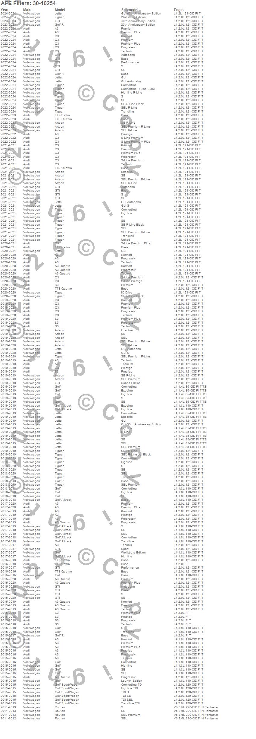Below is an abreviated list of applications for the MagnumFLOW OE Replacement PRO 5R Air Filter.