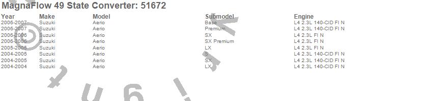 Below is an abreviated list of applications for the Direct Fit Catalytic Converter.