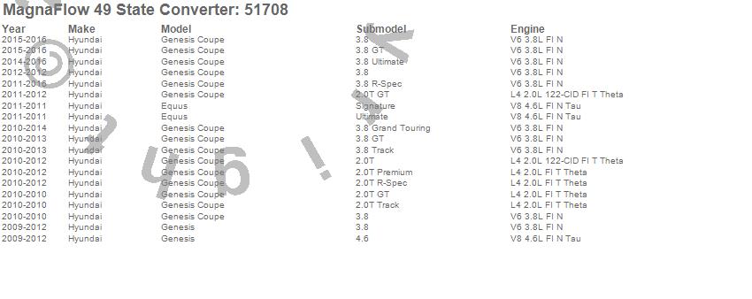 Below is an abreviated list of applications for the Direct Fit Catalytic Converter.