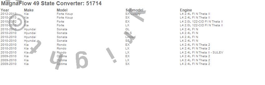 Below is an abreviated list of applications for the Direct Fit Catalytic Converter.