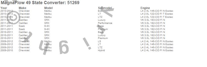 Below is an abreviated list of applications for the Direct Fit Catalytic Converter.