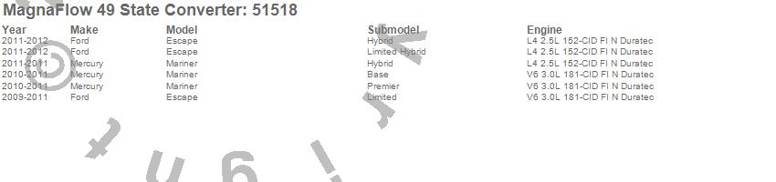 Below is an abreviated list of applications for the Direct Fit Catalytic Converter.