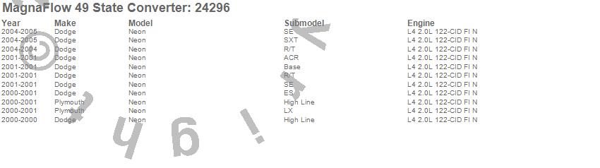 Below is an abreviated list of applications for the Direct Fit Catalytic Converter.