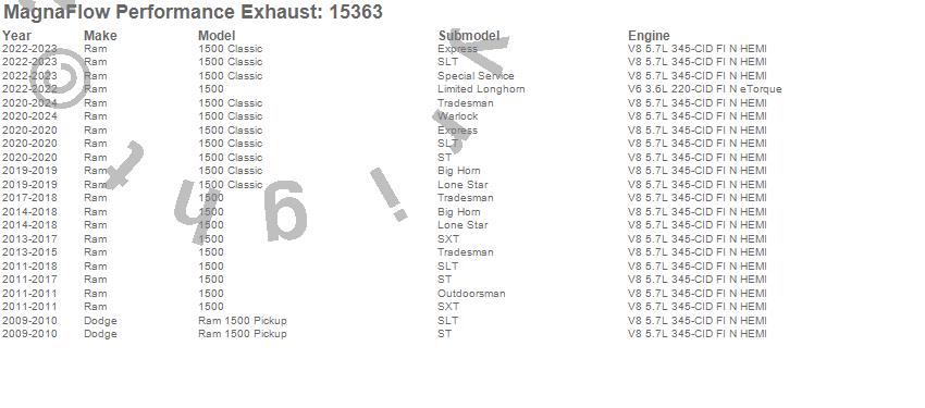 Below is an abreviated list of applications for the MF Series Performance Cat-Back Exhaust System.