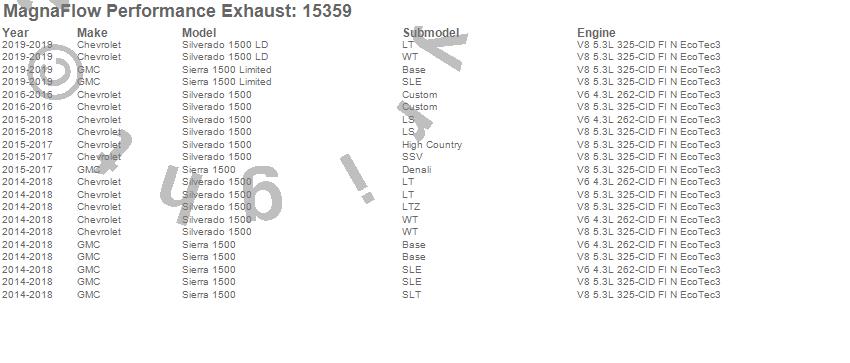 Below is an abreviated list of applications for the MF Series Performance Cat-Back Exhaust System.