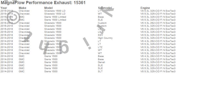 Below is an abreviated list of applications for the MF Series Performance Cat-Back Exhaust System.