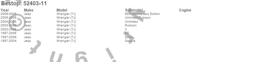 Below is an abreviated list of applications for the Sun Bikini Top Targa Style.