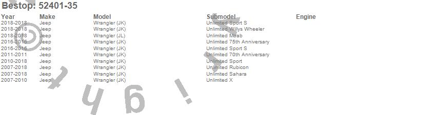 Below is an abreviated list of applications for the Sun Bikini Top Safari Style.