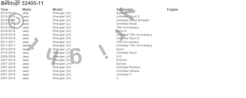 Below is an abreviated list of applications for the Sun Bikini Top Targa Style.