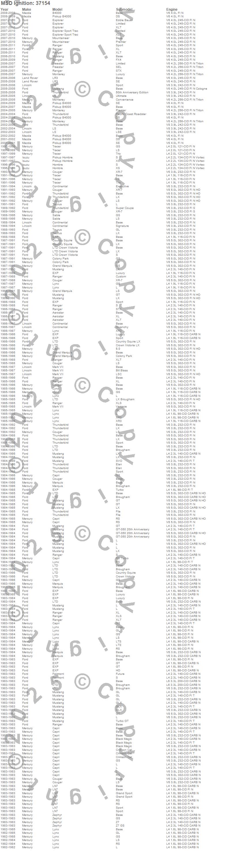 Aerostar, B4000, Capri, Colony Park, Continental, Cougar, Country Squire, EXP, Explorer, Explorer Sport Trac, Fairmont, Freestar, Grand Marquis, Hombre, LN7, LR3, LS, LTD, LTD Crown Victoria, Lynx more…