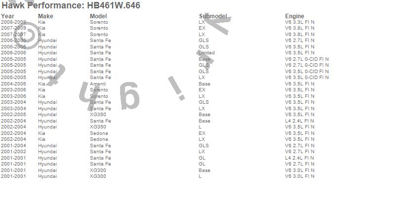 Below is an abreviated list of applications for the Disc Brake Pad.