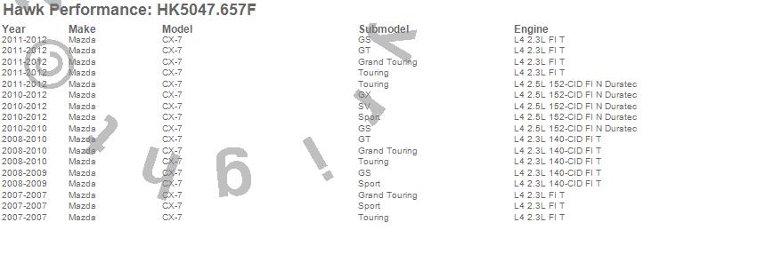 Below is an abreviated list of applications for the Sector 27 Brake Kits. CX-7, Mazda, 2012, 2011, 2010, 2009, 2008, 2007 more…