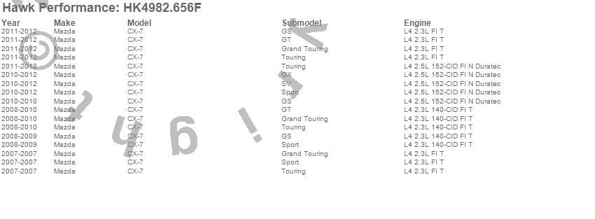 Below is an abreviated list of applications for the Sector 27 Brake Kits. CX-7, Mazda, 2012, 2011, 2010, 2009, 2008, 2007 more…
