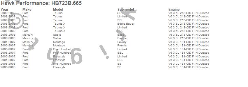 Below is an abreviated list of applications for the Disc Brake Pad.