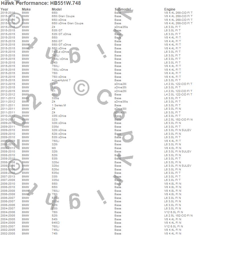 Below is an abreviated list of applications for the Disc Brake Pad.