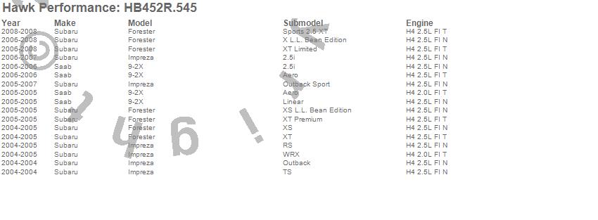 Below is an abreviated list of applications for the Disc Brake Pad.