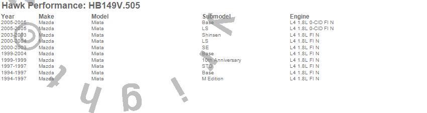 Hawk Performance Disc Brake Pad # HB149V.505 - HT-14 w/0.505 Thickness