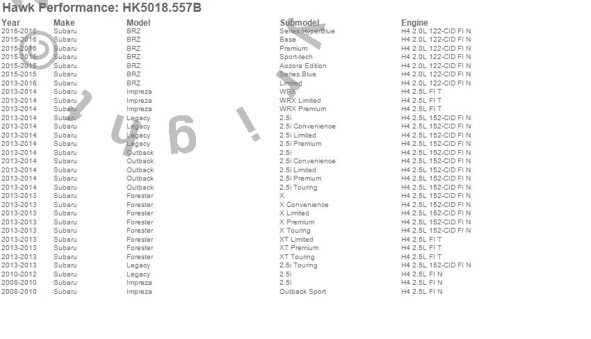 Hawk Performance Sector 27 Brake Kits # HK5018.557B - w/HPS 5.0 Pads - Rear