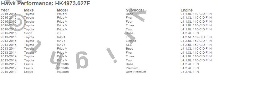 Below is an abreviated list of applications for the Sector 27 Brake Kits.