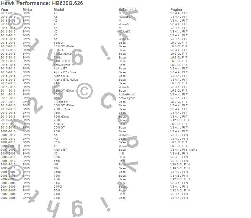 Below is an abreviated list of applications for the Disc Brake Pad.