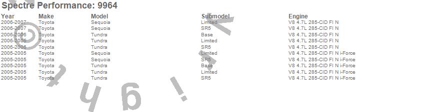 Below is an abreviated list of applications for the Air Intake Kit.