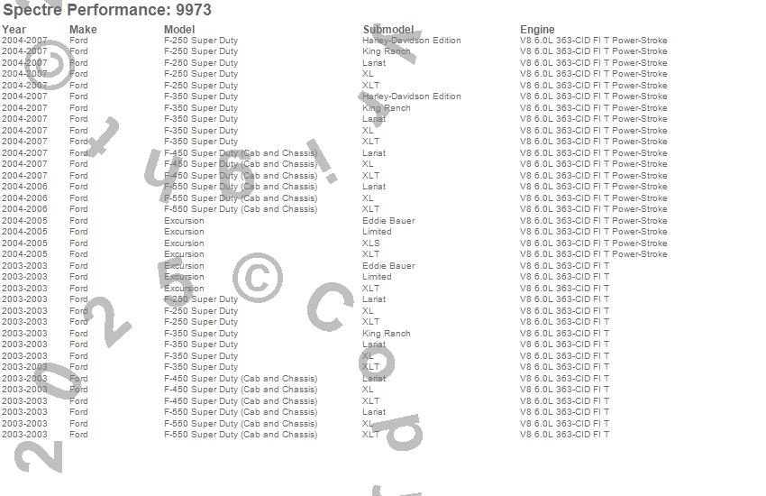 Below is an abreviated list of applications for the Air Intake Kit.