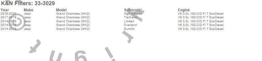 Below is an abreviated list of applications for the Air Filter.