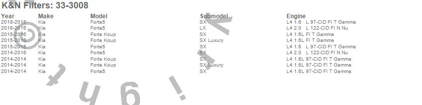 Below is an abreviated list of applications for the Air Filter.