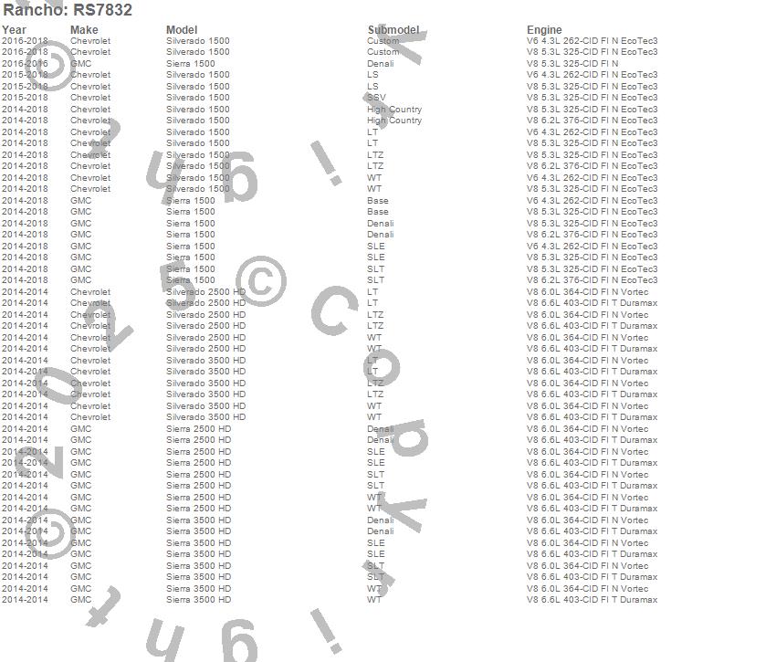 Below is an abreviated list of applications for the RS7000MT Monotube Shock.