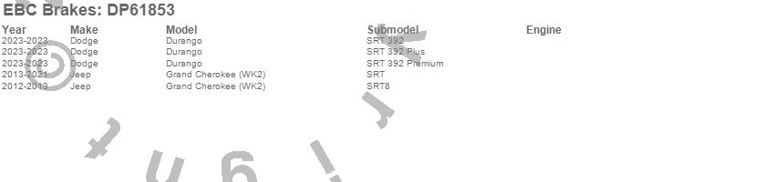 Below is an abreviated list of applications for the EBC 6000 Series Greenstuff Truck/SUV Brakes Disc Pads.