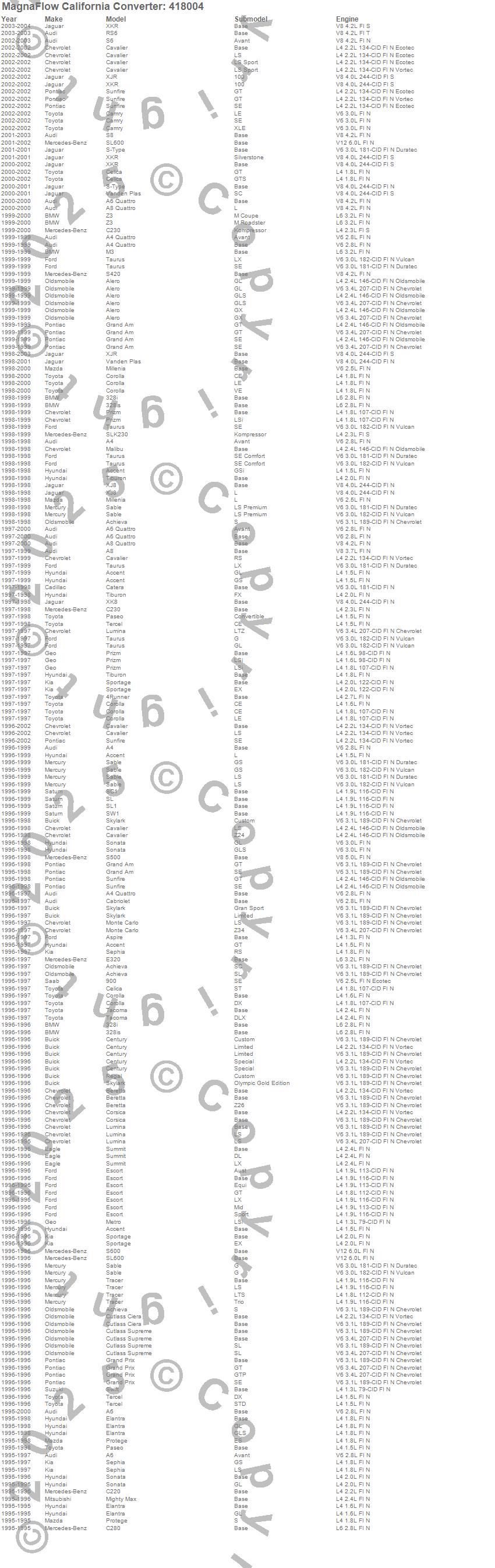 Below is an abreviated list of applications for the Universal California Catalytic Converter.