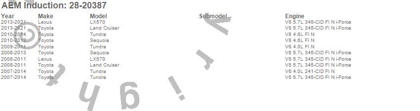 Below is an abreviated list of applications for the Dryflow Air Filter.