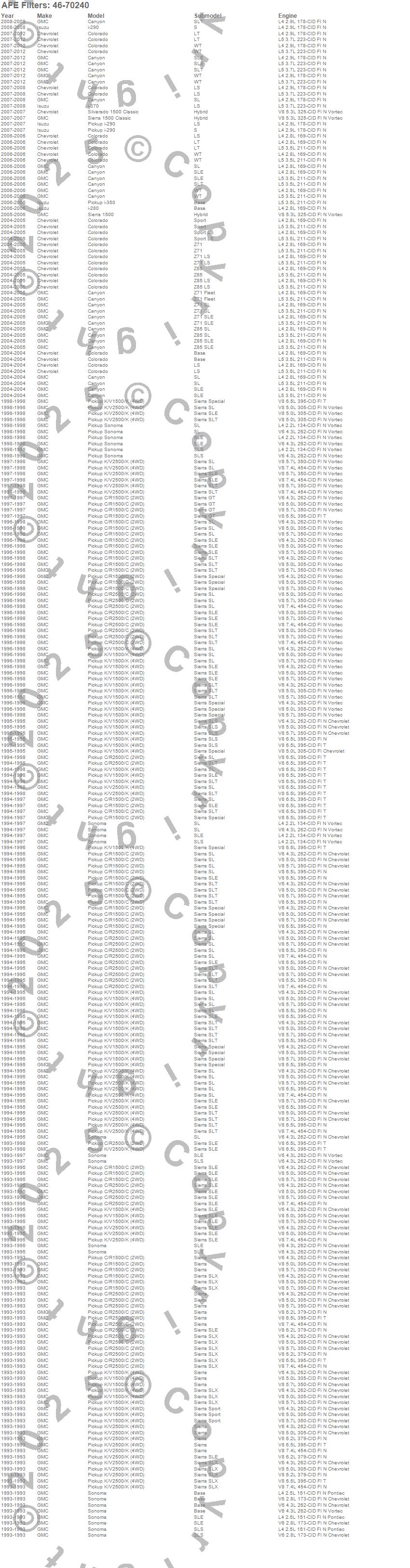 Below is an abreviated list of applications for the Transmission Pan.