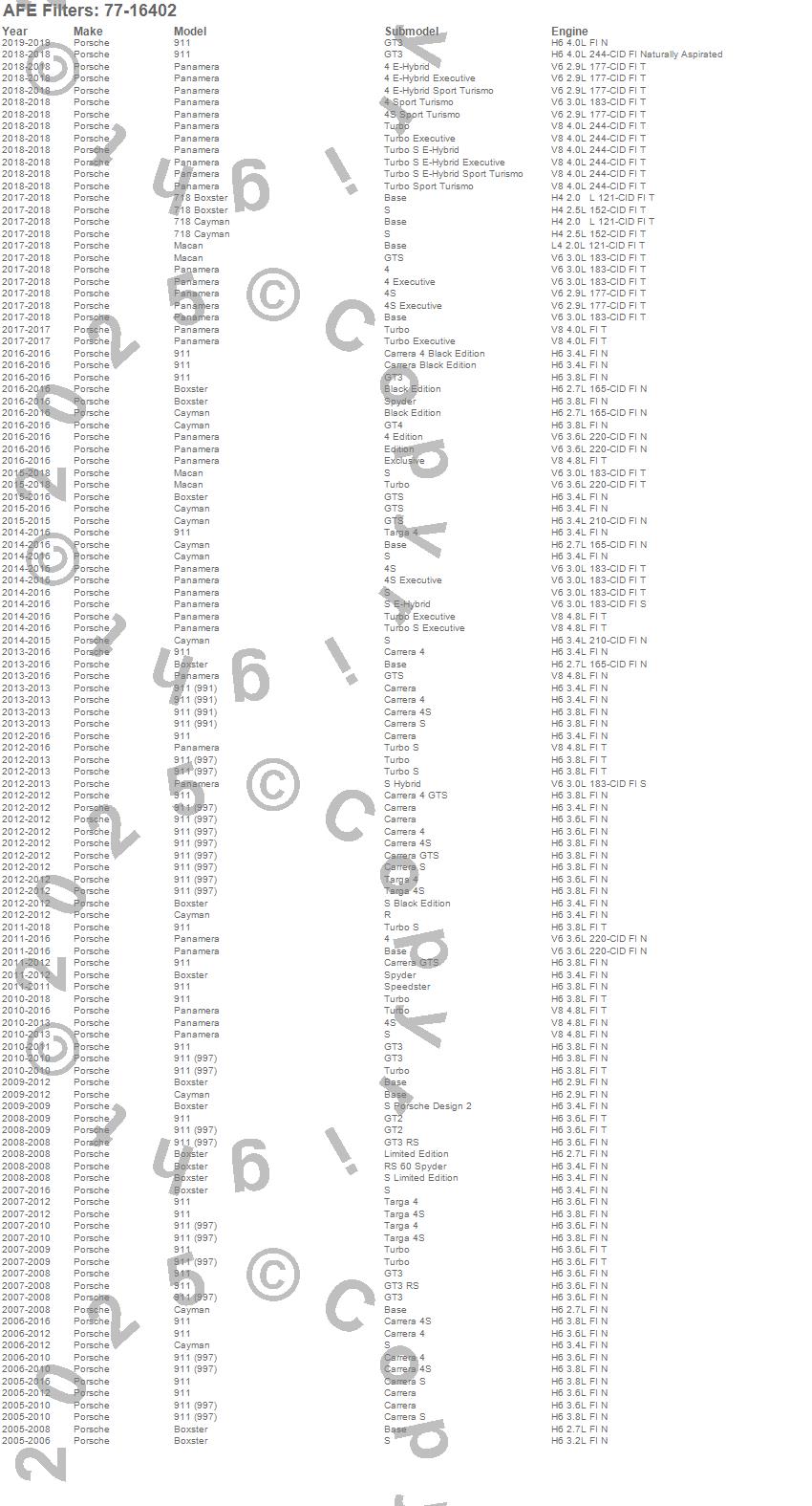 Below is an abreviated list of applications for the Power Sprint Booster.
