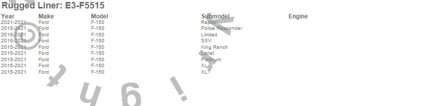 Rugged Liner Rugged Cover Tonneau Cover E3-F5515 Features: